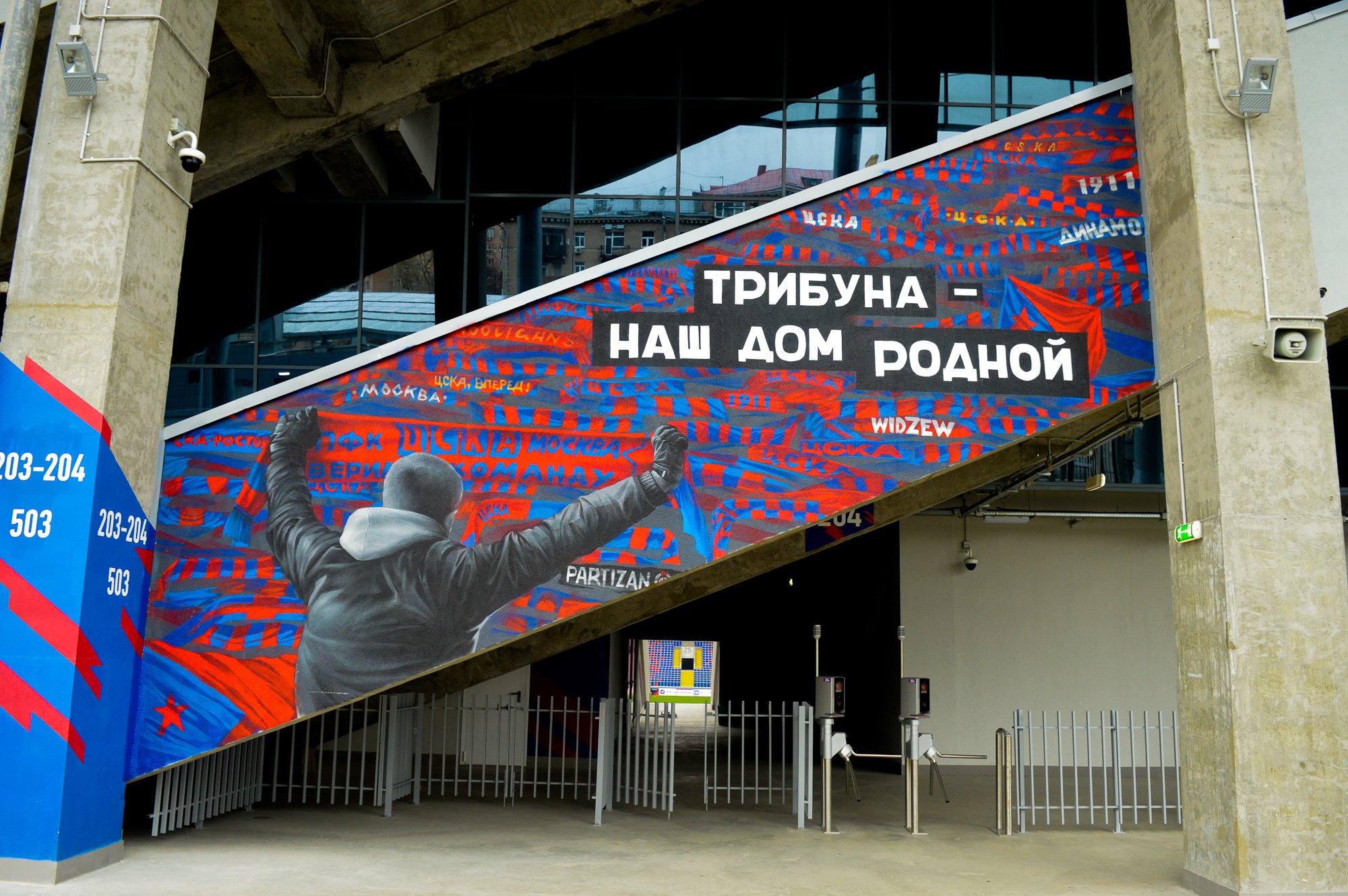 Лестничные пролеты стадиона расписаны граффити. Руки болельщиков на бетонных стенах оживили историю легендарного клуба.